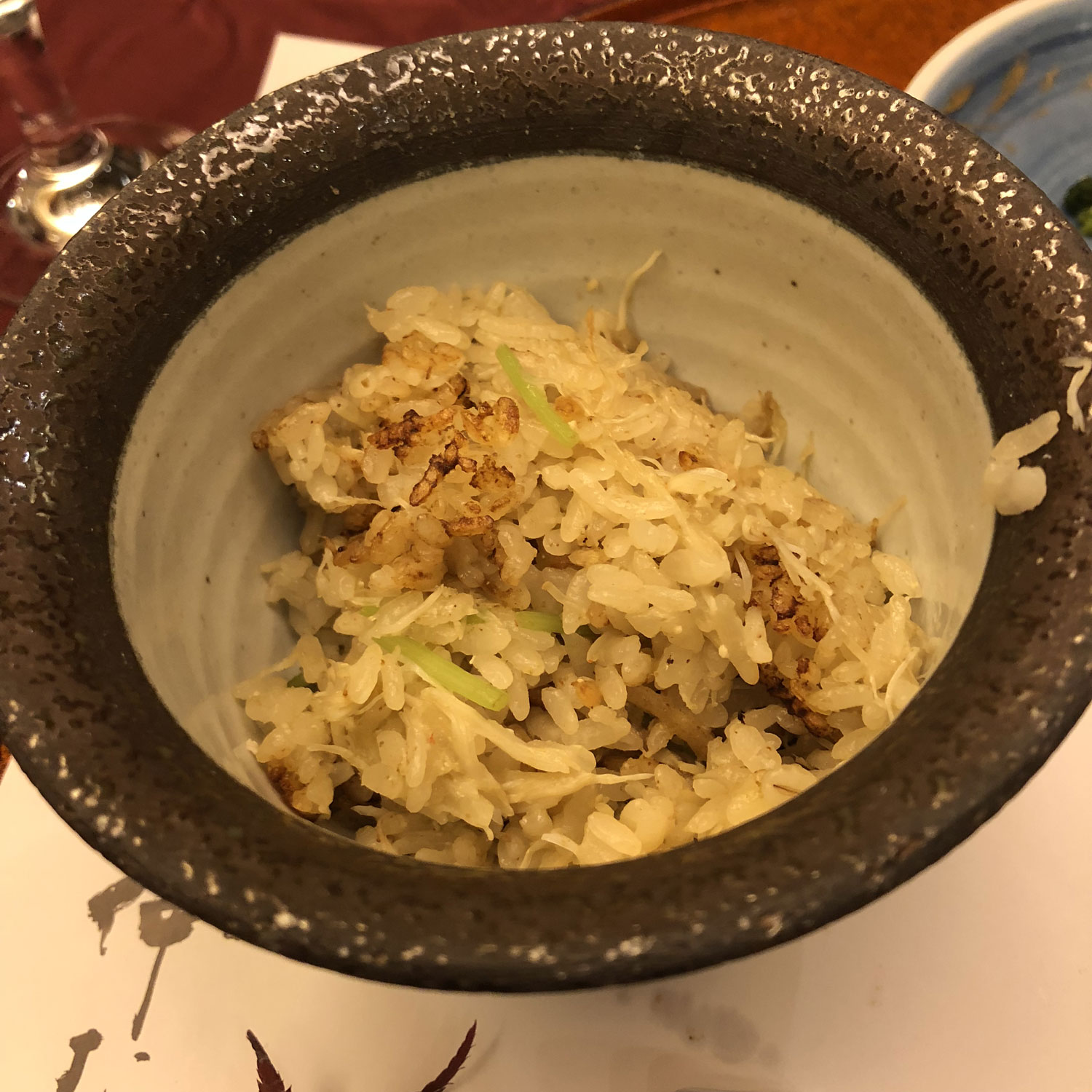 最後のほうの蟹の炊き込みご飯は、食べ切れずにいたら包んでくださいました