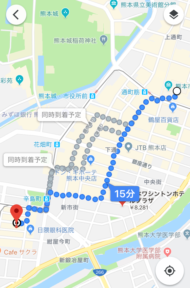 市電で駅三つぶんくらいでしょうか