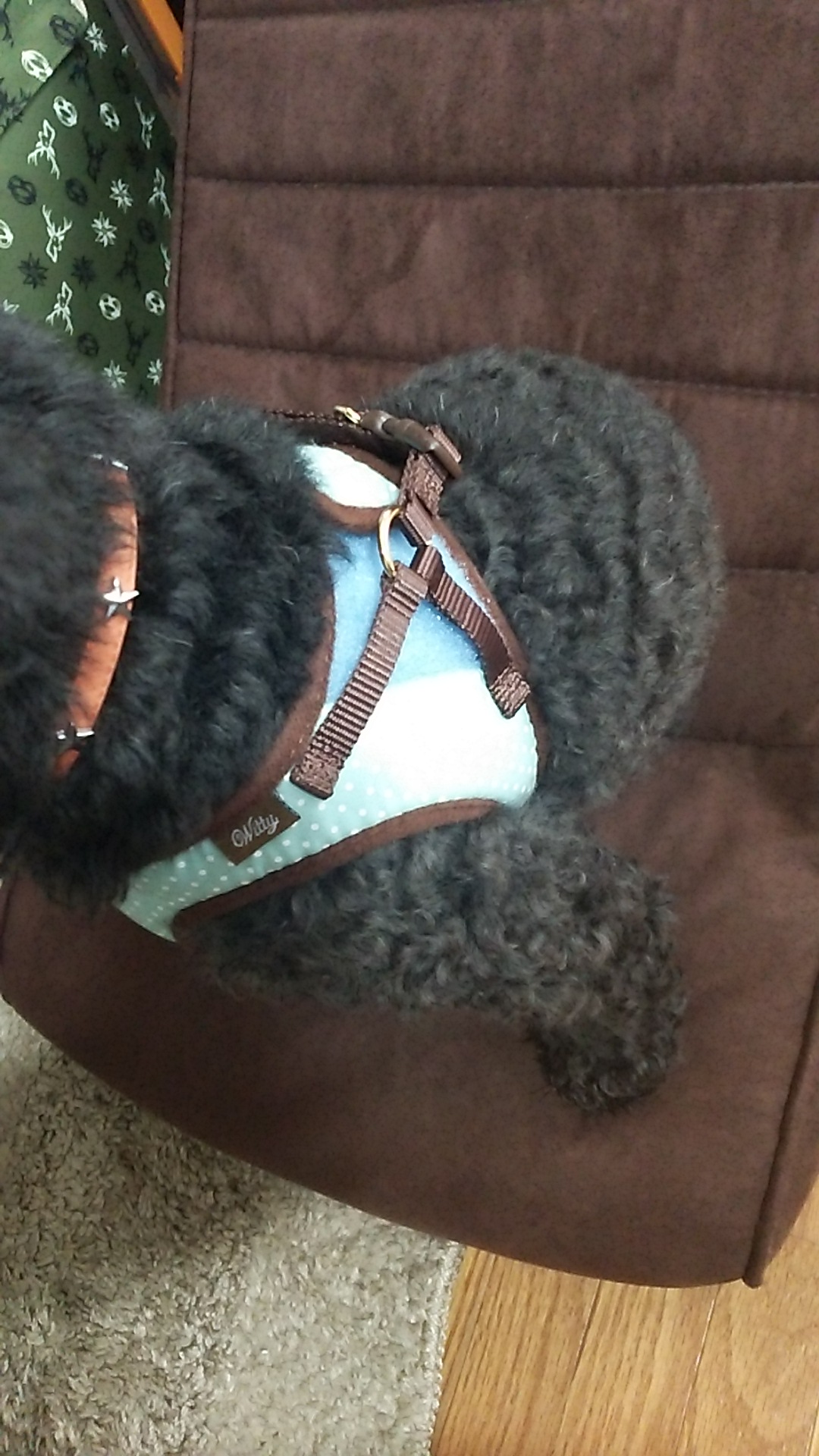 小さいころより狭いケージに入ることをものすごく嫌がっていましたが、ケージが破損して使えなくなったこともあり、今回はハーネスにシートベルトで固定し、試してみることに。